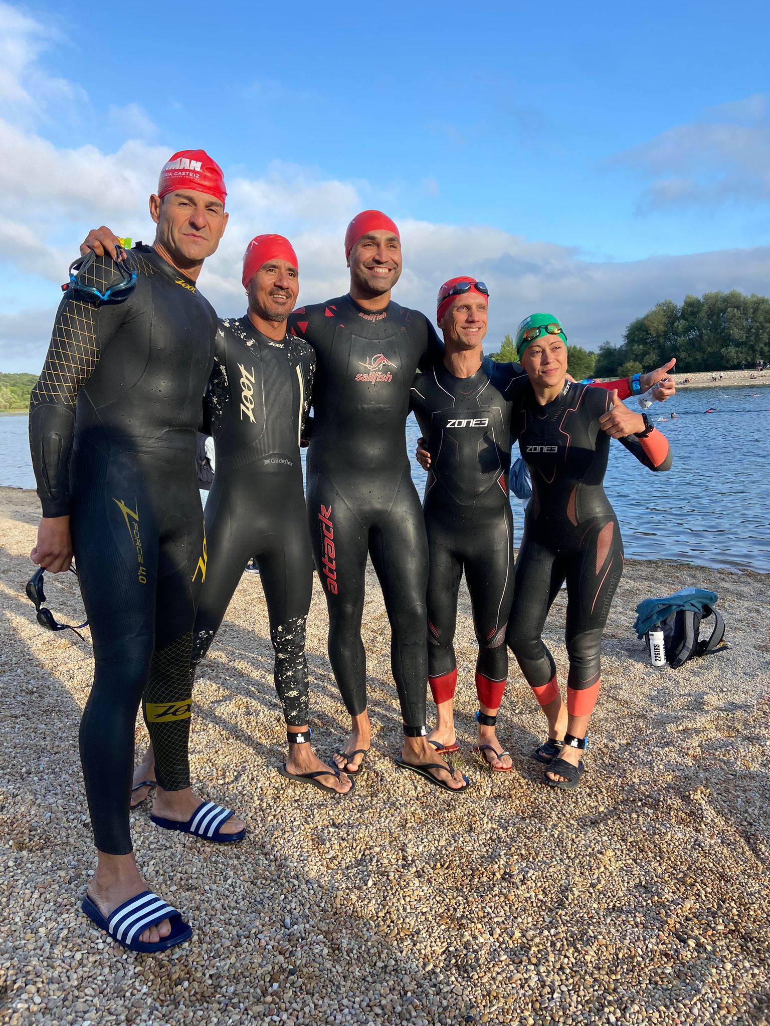 A las 4:45 sonaba la alarma. Pese a la oscuridad y el frío y la perspectiva de tirarme 12 horas seguidas (en el mejor de los casos) haciendo deporte, me sorprende que me levanto con ganas y una energía arrolladora. Salto de la cama y voy a la cocina a preparar los bidones y el desayuno. Desayunamos en el apartamento con los compis y terminamos de prepararlo todo. Salimos a la hora programada para ir a buscar el autobús que nos lleva al lago de Landa. Llegamos y ya está amaneciendo, cosa que se agradece. No hay nada de viento y la temperatura es fresca. De momento, tenemos todo de cara para que sea una jornada espectacular.